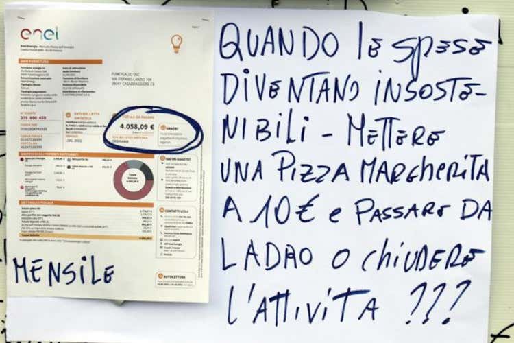 «Quando le spese diventano insostenibili - Mettere una pizza Margherita a 10 euro e passare da ladro o chiudere l'attività?», aveva scritto chiaramente sul cartello posto di fianco all'ultima bolletta della luce, quella di luglio, pari oltre quattromila euro (4.058 euro e 9 centesimi per la precisione).