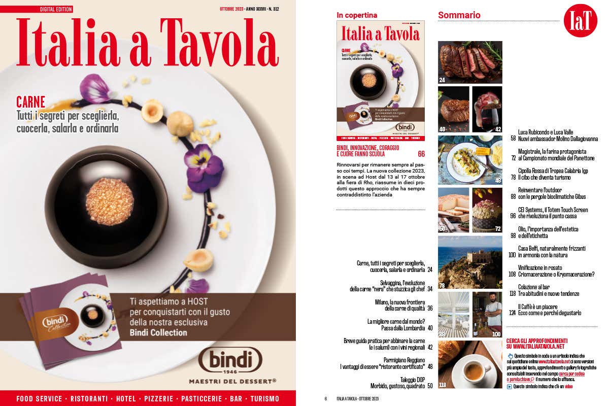Autunno, tanti i temi sul piatto per questo numero del magazine Italia a Tavola numero 312. Partiamo dall'ampio approfondimento sulla carne firmato da Matteo Scibilia, responsabile scientifico della testata che, partendo dalle qualità del prodotto articola un'interessante disamina sulle razze bovine, dalla tradizione italiana (Fassona piemontese, Chianina, Marchigiana, Romagnola..) fino alle più pregiate razze estere (Wagyu, Kobe, Rubia gallega, Aberdeen e Higland scozzesi, Bazadaise, Salers, Charolais francesi...). Non ultimo tecnice di frollatura (Dry Aged compresa) e di cottura.