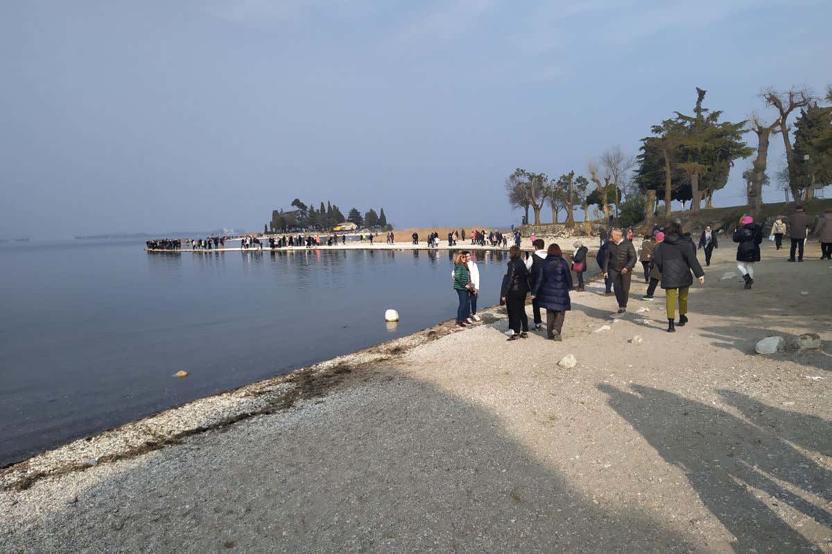 Gran siccità e aviaria: l'inverno 20022/23 sul Lago di Garda sarà ricordato come l'anno delle anomalie e dei record. Entrerà sicuramente negli annali della storia, la ''camminata'' sulle acque, o meglio sull'istmo che da porto Torchio di Manerba si allunga fino all'isola di San Biagio, o isola dei conigli. Una striscia di sabbia e ghiaia larga 1 metro e lunga 100 metri. Un evento che accade raramente, almeno a memoria d'uomo e che ha richiamato fino a ieri, migliaia di persone.