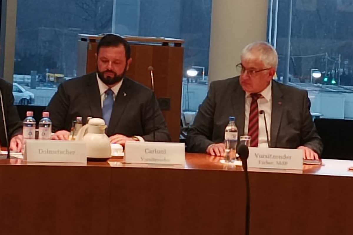 A Berlino presso il Bundestag si è svolto ieri l'incontro tra la delegazione italiana in rappresentanza della Commissione Agricoltura della Camera dei deputati guidata dal presidente Mirco Carloni, e dagli onorevoli Stefania Marino e Attilio Pierro e la Commissione Agricoltura del Parlamento tedesco guidata da Hermann Färber oltre ai componenti dei partiti. L'incontro si è svolto con grande cortesia affrontando i temi cari ad entrambe le Nazioni in particolare il tema dell'etichettatura sul vino che avverte del pericolo per la salute, del tema dei lupi, siccità, logistica, nutriscore.