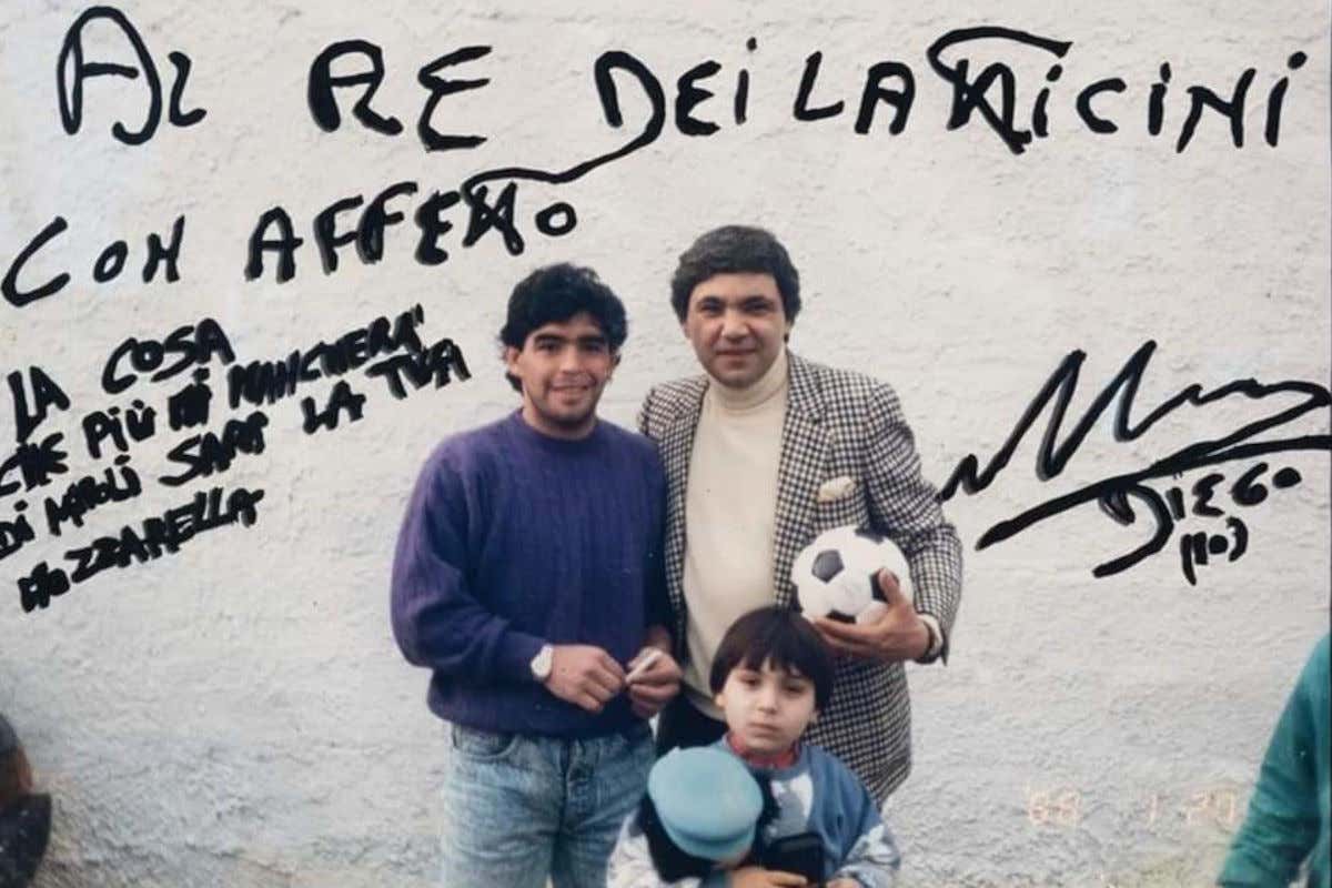 Maradona con Salvatore e Antonio Luise produttori di mozzarella di cui Maradona era goloso