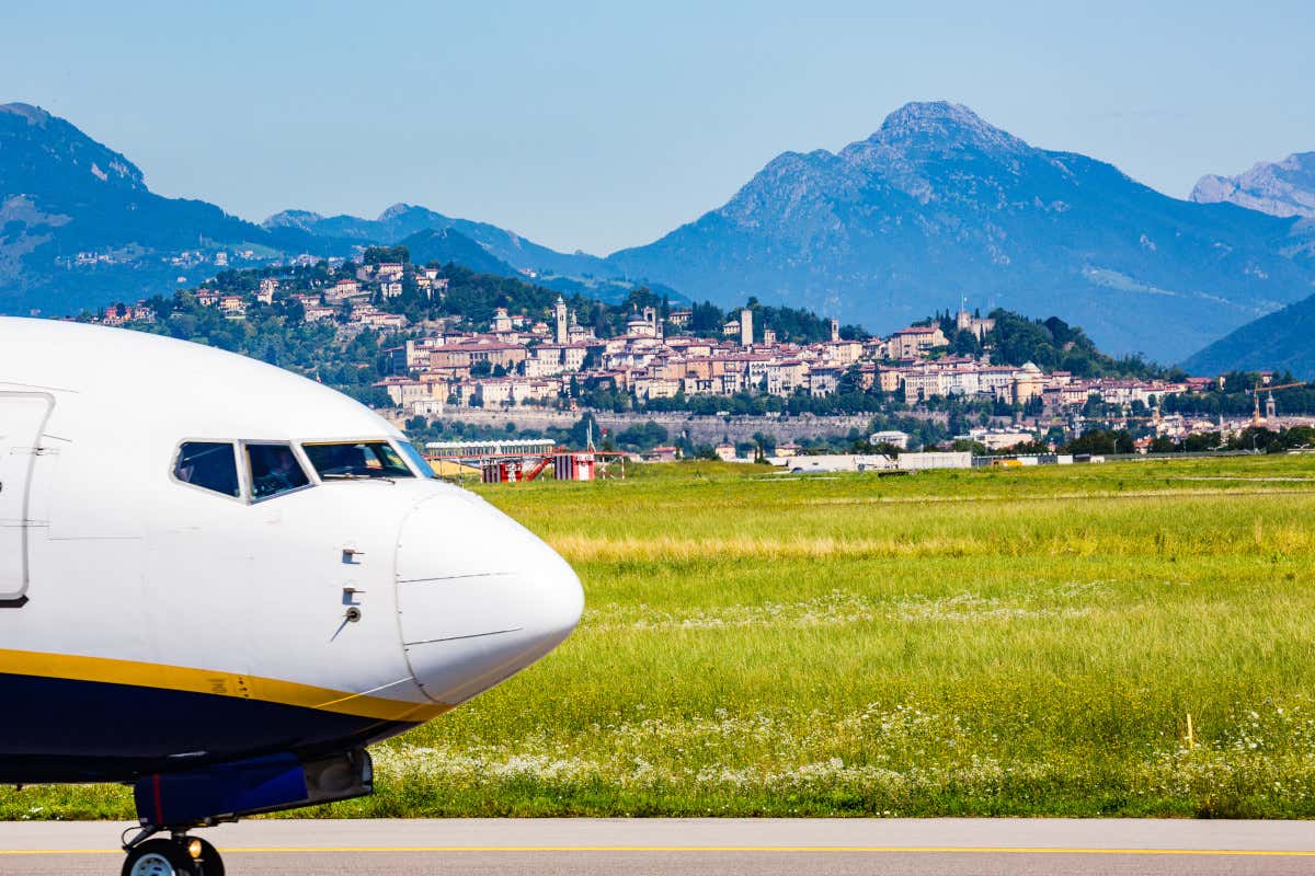 L'aeroporto di Orio al Serio con Città Alta sullo sfondo