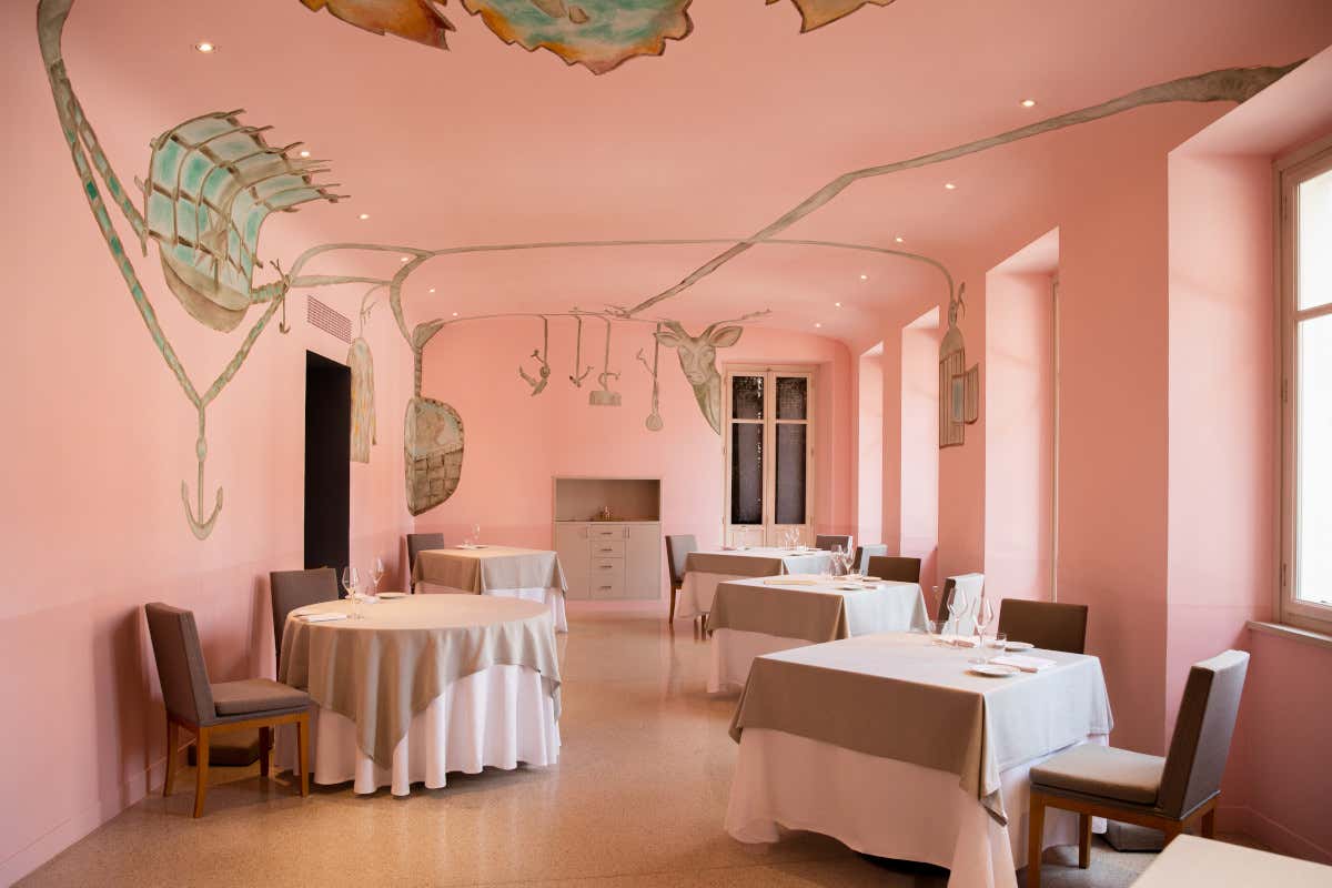 La storia del Reale, tre stelle Michelin di Castel di Sangro, provincia dell’Aquila, inizia in realtà a Rivisondoli, qualche chilometro più a sud. Lì Niko Romito e la sorella Cristiana nel 2000 rilevano la trattoria di loro padre e muovono i primi passi verso la loro idea di cucina e di ristorazione. Un percorso che ha poi preso definitivamente forma al Reale, con la prima stella Michelin arrivata nel 2007, seguita dalla seconda nel 2009 e dalla terza nel 2014. Il ristorante si trova all’interno di un ex monastero completamente riqualificato, che ospita anche un hotel, il Casadonna, e l’Accademia Niko Romito, una scuola di alta formazione.