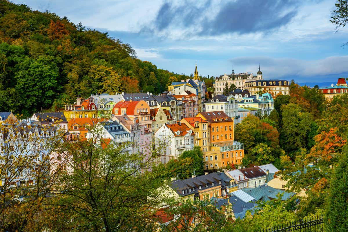 Il Colonnato del mercato e, sullo sfondo, alcune case di Karlovy Vary