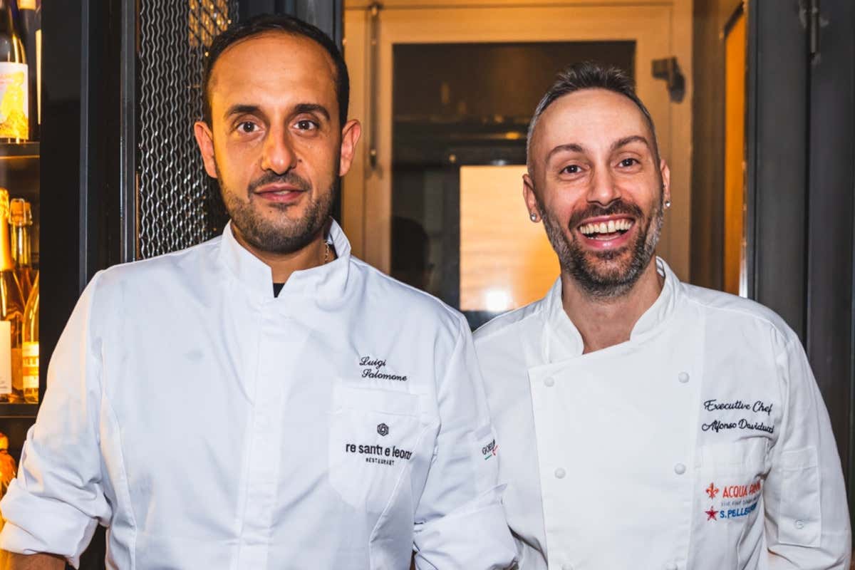 - Menu: tartare... braciola | carpaccio di capasanta marinata alla soia, pesca, tzatziki, caviale e chips di alghe | capasanta fritta in airbag di patate e maio allo shiso | mesca francesca, crema di piselli, scampi, panna acida al limone e caramello di scampi | risotto Acquerello, burro affumicato alle foglie di limone, bottarga e nocciole | controfiletto di Giovenca Sannita, salsa alla nduja, pak-choi arrostito, ponzu, gomasio e peperone crusco | bufala, ciliegie e Lacryma Christi | latte e fragola.