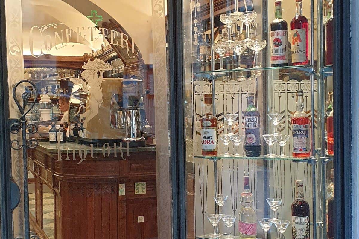 La vetrina del bar storico Ferrua 1842