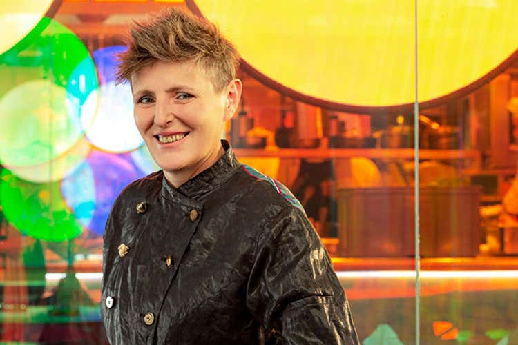 „Qualche piccolo cambiamento in sala, che rimane illuminata dalla grande vetrata che si affaccia su Piazza 25 aprile e che offre la possibilità di mangiare guardando cosa succede all’esterno. Un ambiente progettato dalla stessa chef che può ospitare fino a 90 persone, con tavoli in legno massello, tavolo sociale disegnato da Renzo e Matteo Piano. Mentre la cucina a vista è un pezzo unico di Molteni. Il menu a degustazione del ristorante si articola in 4 percorsi: TARTUFO (4 piatti a 100€), La storia è VIVA (6 piatti a 120€) tutto a base di pesce, VIVA l’orto con 8 piatti (110€) a base soprattutto di vegetali provenienti dall’orto del ristorante, e infine, VIVA il futuro, un’esperienza più ampia e completa (10 piatti 160€), dove si alternano piatti di mare, vegetali e di terra.“