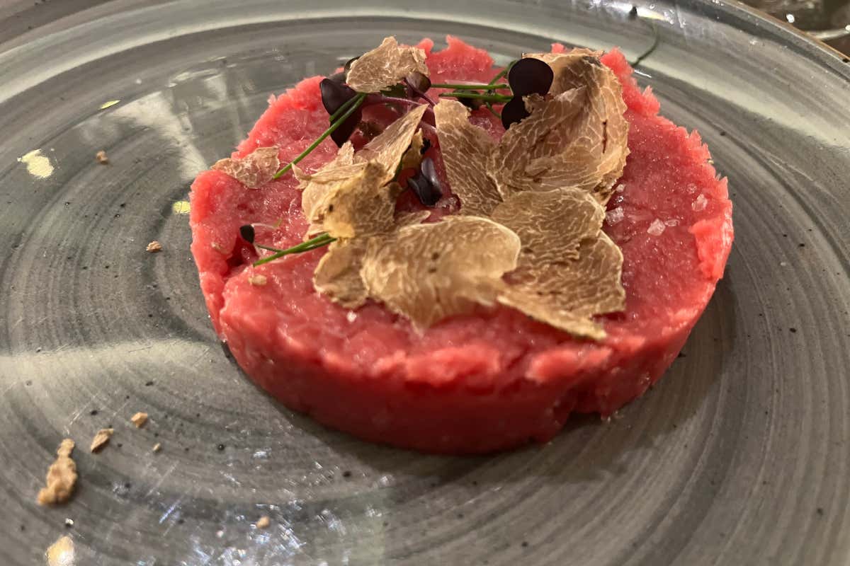 Battuta di Fassona piemontese, olio evo del Monferrato e Tartufo bianco della Valle Ghenza