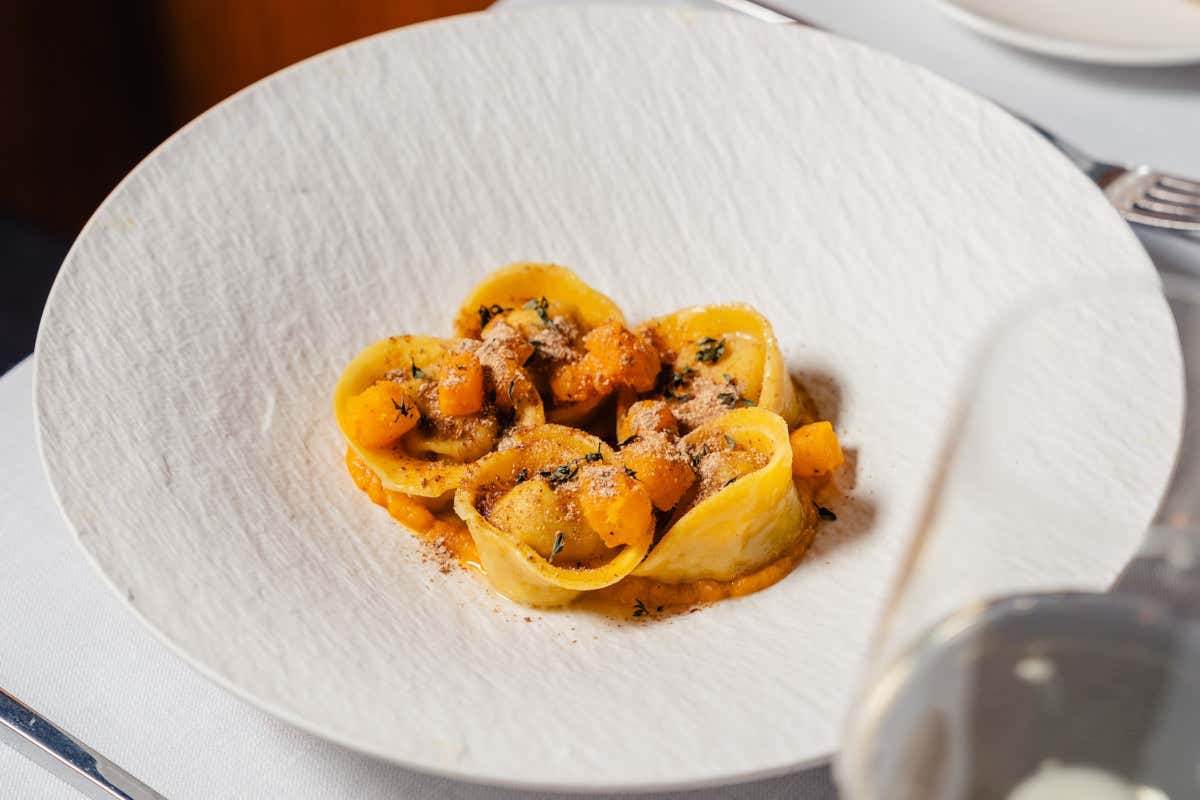 «Uso molto i prodotti stagionali, zucca anzitutto, con l'obiettivo - sottolinea Mocellin - di far uscire dalla cucina piatti golosi e non standardizzati, goderecci e gustosi». Un esempio su tutti, i tortelli di porcini, zucca in due consistenze, polvere di porcini, timo limonato. Menu leggero perfetto anche a mezzogiorno per una clientela d'affari e business che vuole allo stesso tempo apprezzare, a due passi dal Duomo, cose buone in tempi ''veloci'' nel rispetto di chi lavora in cucina.