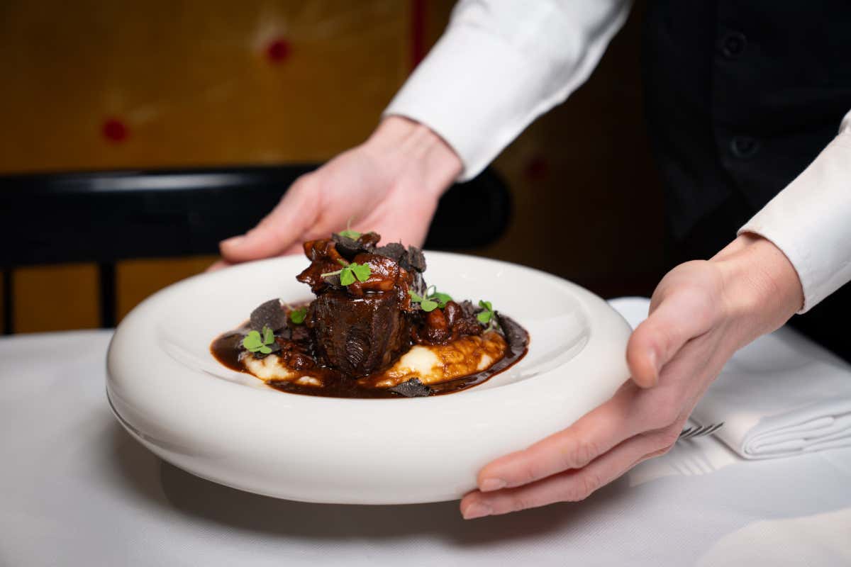 Noi abbiamo potuto scegliere uno starter fra Caprese, Ceviche di Carne, Tartare di salmone guacamole e burrata, Ceasar salad o Insalata Nizzarda, a cui far seguire un piatto tra Spaghettone al pomodoro profumato al chimichurri, Risotto alla milanese con ristretto di carne, Guancia di manzo (gran piatto, onore al merito!) brasata al malbec con purè, Cubi di cotoletta alla milanese con misticanza, Filetto di salmone con verdure di stagione grigliate, Mosaico veg o Gazpacho di frutta e verdura con pinzimonio croccante. Niente fuochi d’artificio, tanta sostanza, fantasia qb.