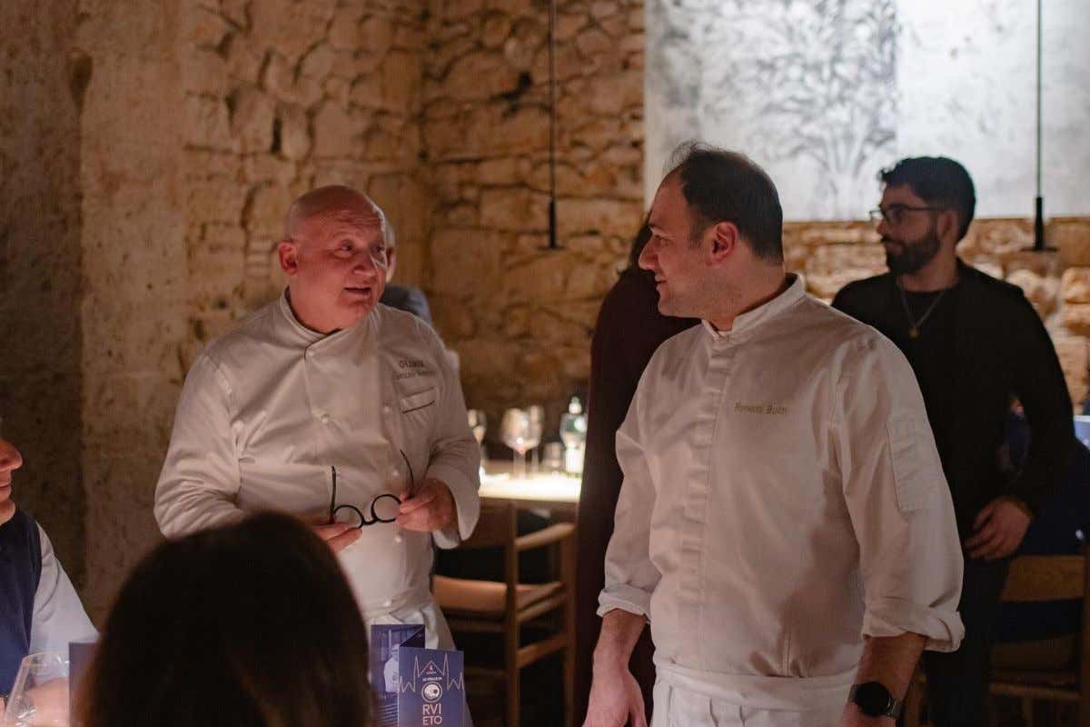 Chef Ronald Bukri, a destra, con uno dei suoi maestri Gaetano Trovato del ristorante Arnolfo