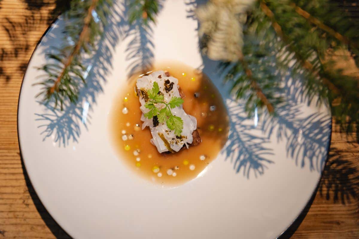 L’ambizione, dopotutto, è quasi naturale considerando i trascorsi di chef Bukri, uno che si è formato nelle cucine di Arnolfo, storico ristorante due stelle Michelin in Toscana guidato da Gaetano Trovato, uno dei maestri che un giovane Ronald (ancora 21enne e alla prima esperienza in un fine dining) ha avuto prima di intraprendere una sorta di viaggio dell’eroe moderno che l’ha portato prima da Lo Priore (l’altro suo mentore) a Siena, poi a Londra nel bistellato Sketch e a Sidney nel tristellato Guillaume at Bennelong. A tutto ciò ha fatto seguito il ritorno in Italia, nuovamente in Toscana dove a Montalcino all’Osticcio ha conosciuto proprio Francesco Perali, responsabile di sala originario di Orvieto.