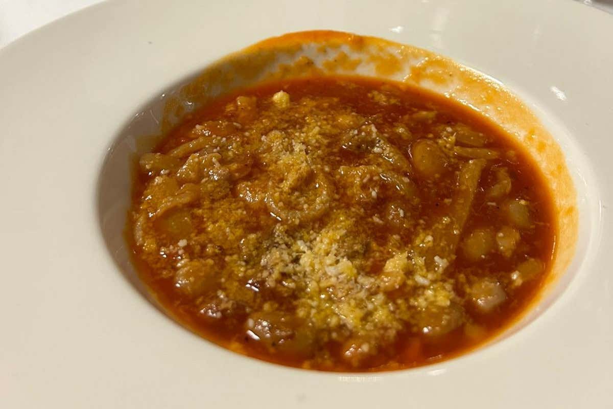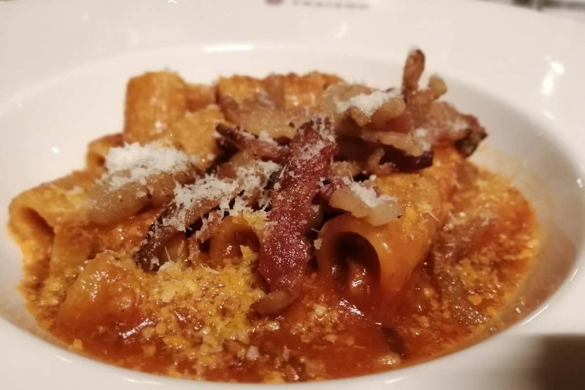 Questo il menu proposto da Andrea De Salvo: Rocher di Carciofi su crema di Pecorino (Caseificio Seggiano), Mezze maniche all'amatriciana con guanciale croccante (Salumificio Coccia), Fagioli con le cotiche e Maritozzo con la panna. In abbinamento i vini della Famiglia Cotarella: Best Brut, Est Est Est spumantizzato, Tellus Chardonnay, Tellus Syrah e Anita Aleatico.