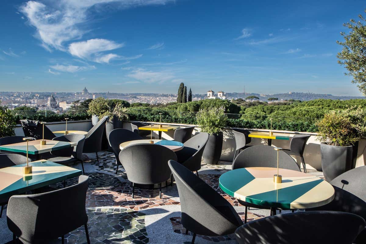 L'hotel a 5 stelle offre servizi di alta qualità tra cui Settimo, un ristorante da 60 posti, una terrazza panoramica con vista su Roma, un centro fitness e sale riunioni. A seguito di un ampio rinnovamento nel 2018 a cura del designer Jean-Philippe Nuel, la struttura offre uno stile contemporaneo classico che unisce lo stile di vita italiano "Dolce Vita" e l'Art de Vivre francese. L'hotel subirà ora una nuova fase di lavori tecnici per migliorare le sue prestazioni energetiche e ambientali.
