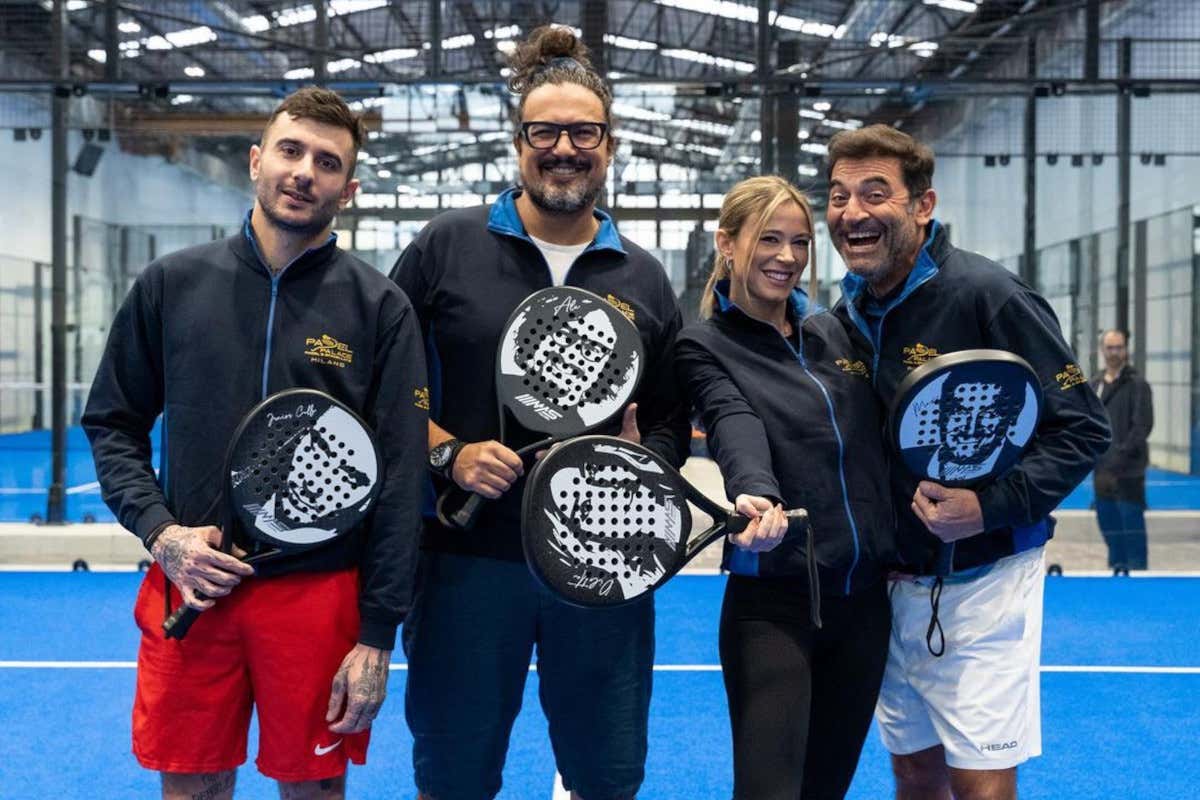 Alessandro Borghese con gli altri soci fondatori di Padel Palace: Junior Kelly, Diletta Leotta e Max Giusti