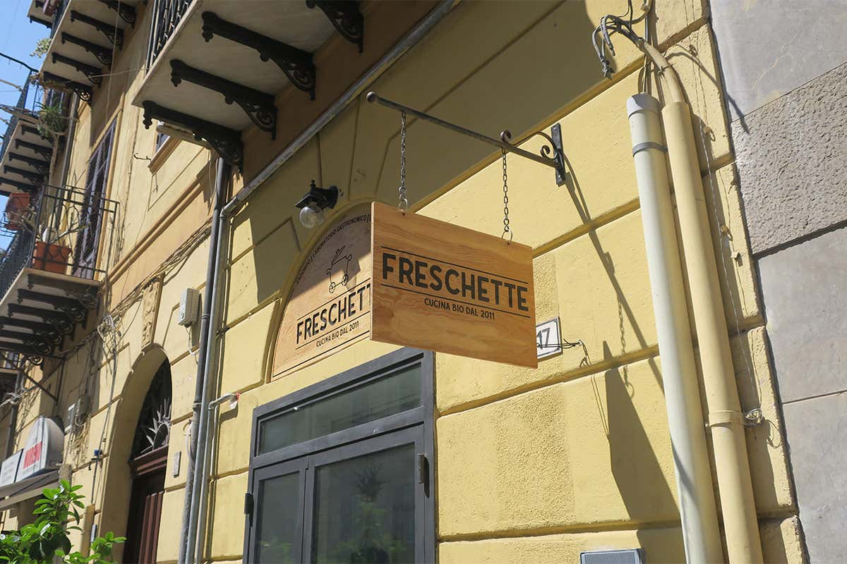 Asporto e servizio a domicilio per il negozietto Freschette, a metà strada tra il Politeama e Borgovecchio, in provincia di Palermo; il menu, per lo più vegetariano, è vario, con alimenti di stagione, condimenti pregiati, cotture a puntino. A coronare il tutto, buon gusto anche nel servizio e un tocco di femminile gentilezza. Dal laboratorio gastronomico è possibile ricevere il menu del giorno, poi prenotare direttamente dal cellulare concordando l’orario; così si evitano le attese. E al banco le pietanze vengono consegnate già ben incartate. In alternativa è possibile richiedere la consegna a domicilio con una minima tariffa. Si segnala inoltre che il locale è nato così, senza servizio al tavolo.