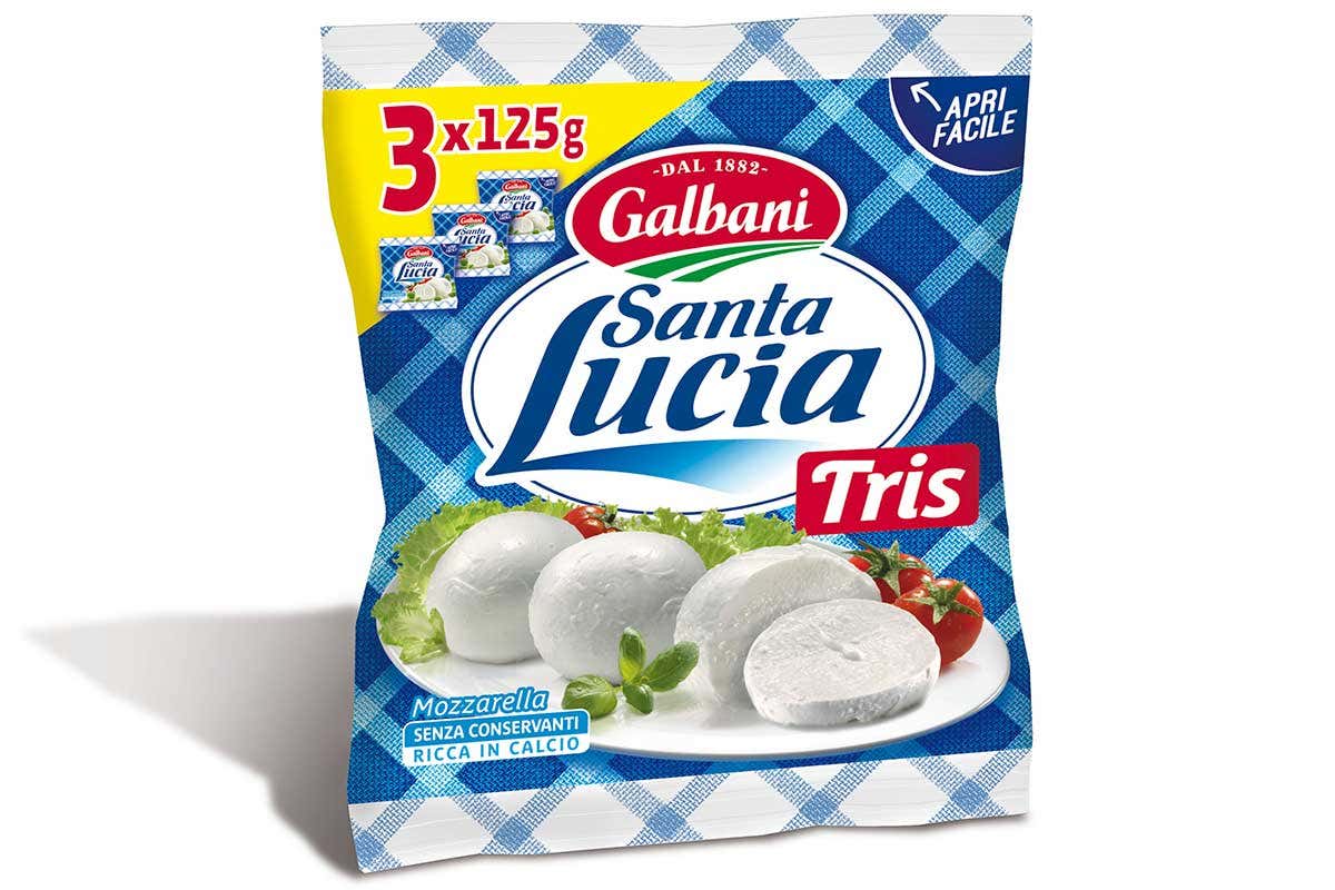 La confezione di Mozzarella Galbani Santa Lucia Tris Galbani Mozzarella Santa Lucia Tris, spinta green