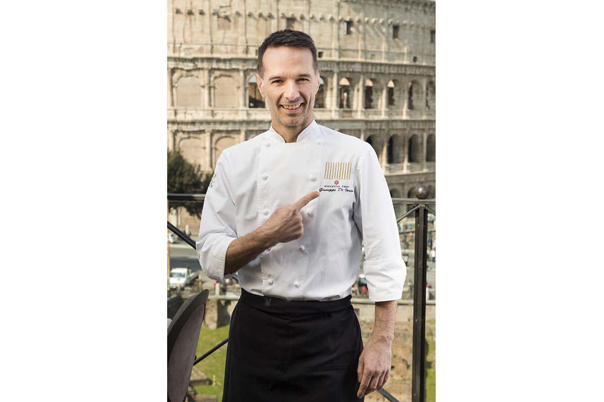 Roma a portata di mano. Più di così non si può, con il Colosseo che sembra parte integrante del locale. Siamo a Palazzo Manfredi, cinque stelle capitolino dove dal 2010 Giuseppe Di Iorio guida il ristorante stella Michelin “Aroma”. Dodici anni da vertice, con alle spalle un curriculum siderale. Dopo la scuola alberghiera a Roma, muove i primi passi nel Ristorante Margutta. Ma gli orizzonti vanno allargati: si devono fare nuove esperienze. Eccolo quindi a Londra all’Hyde Park Hotel. Il ritorno nella Capitale lo vede ormai specializzato nell’alta ristorazione alberghiera e approda ad insegne autorevoli come Hotel Inghilterra e Parco dei Principi. Nel 2005 è al ristorante Mirabelle dell’Hotel Splendide Royal, dove la sua linea di cucina si consolida per poi definirsi in oltre un decennio di alto profilo nelle cucine di Aroma. Fino all’ultimo riconoscimento che è stato un po’ la consacrazione del pubblico: il 14° sondaggio “Personaggio dell’anno dell’enogastronomia e dell’accoglienza - Premio Italia a Tavola” lo ha visto trionfare nella categoria “Cuochi”.
