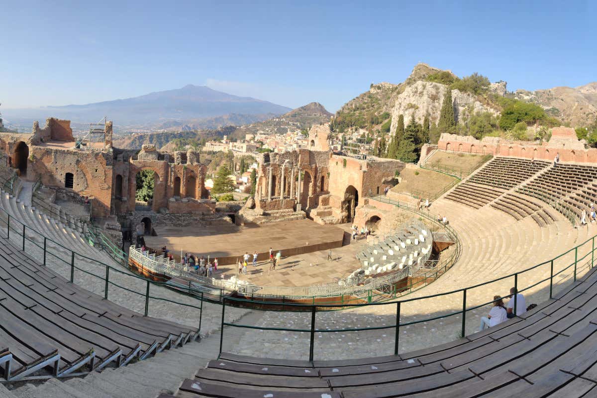 Il teatro greco di Taormina con l'Etna sullo sfondo
