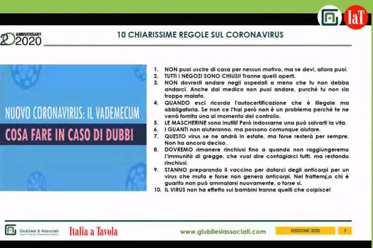 Nel webinar di Giubilesi&Associati e Italia a Tavola illustrate le soluzioni da attuare, con buon senso, garantire sicurezza e una gestione che pensa al futuro e interpreta mercato e tendenze . In primo piano delivery, distanziamento, sanificazione, accoglienza e comunicazione .