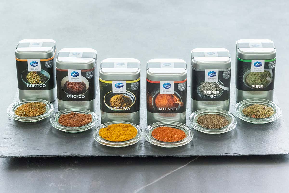 Un regalo prezioso per arricchire con il loro profumo, il loro colore e il loro sapore ogni tipo di ricetta: sono le spezie di AMC, azienda specializzata in accessori e sistemi di cottura di alta qualità. Sono senza sale aggiunto e senza additivi, gli aromi sono intensi grazie all’utilizzo di ingredienti di alta qualità con svariate possibilità di utilizzo, i contenitori sono pratici a perfetta protezione del sapore.