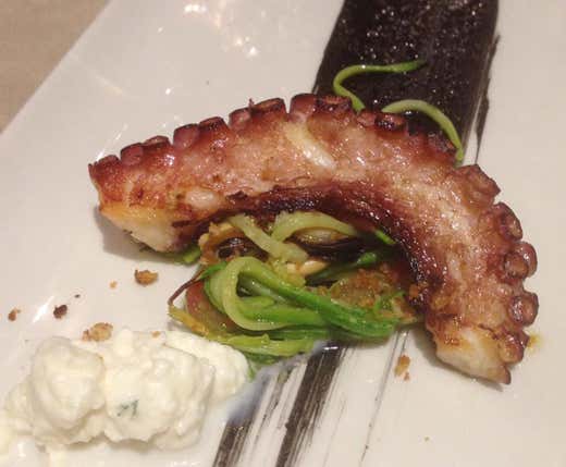 Accorti gli approvvigionameti dai fidati fornitori, sapienza nell'esecuzione delle ricette. Quasi tutto è fatto in casa. Frequente la rotazione, sia per ossequio alla stagionalità e sia per non sopire gli empiti creativi del cuoco Riccardo. Si parte con un antepasto molto buono, ben concepito e ben realizzato: polpo verace arrosto con agretti, burrata e cozze. Turbinio di sapori, a tratti l'armonia può svanire ma poi tutto si ricompone e vi è soddisfazione ampia del palato. Il primo, amorevolmente propostoci, è memorabile e da solo varrebbe l'assidua frequentazione del ristorante: tortelli d pasta integrale ripieni di carbonara con zucchine romanesche saltate. 10 e lode!