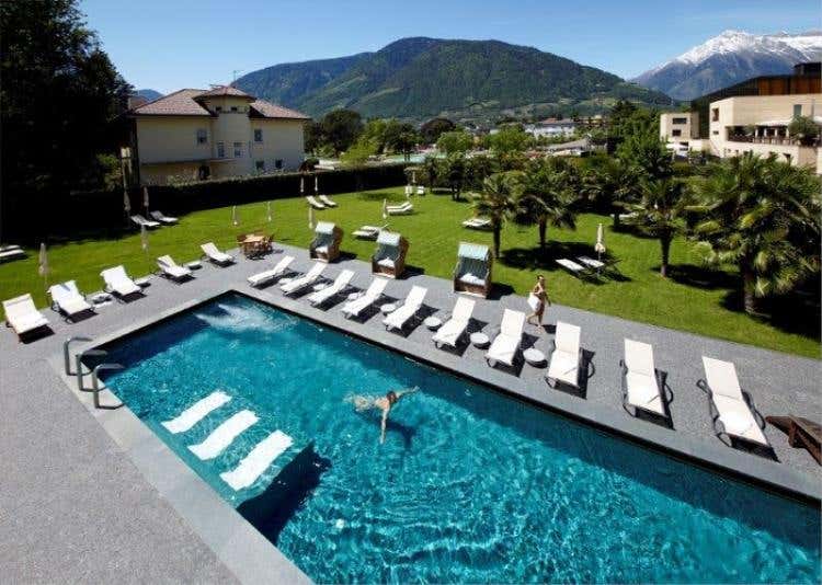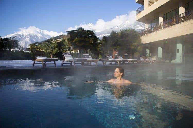 Hotel Terme Merano la vacanza ha un valore aggiunto al semplice soggiorno in hotel. È un viaggio nel tempo in un luogo di culto per la città di Merano. L’ospite è in pieno centro, può godere di tutte le comodità che offre la città. Clima mediterraneo, panorama incantato che vede protagonisti il centro storico, il fiume Passirio, le Alpi, i Castelli Principesco, Tirolo, Fontana e Trauttmansdorff e il Parco delle Terme di Merano.