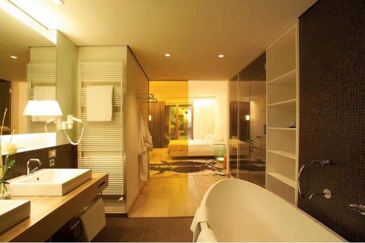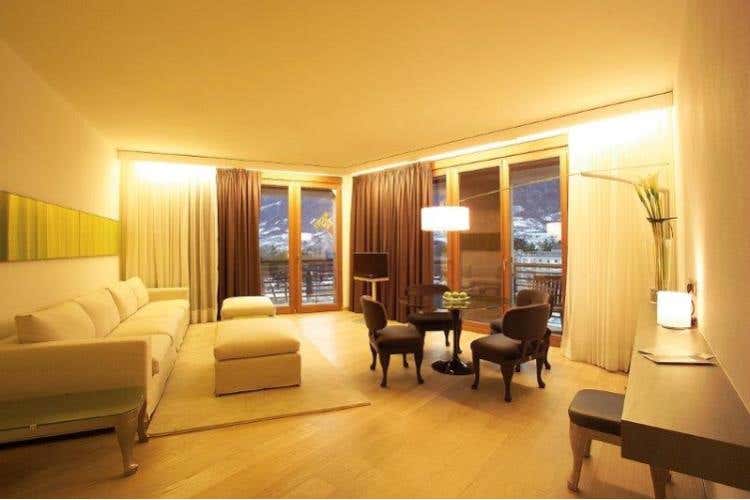 Grazie alla progettazione del famoso architetto bolzanino Matteo Thun che nel 2006 ha realizzato l’hotel, i contrasti tra stile moderno e tradizionale si sposano perfettamente anche nelle 24 Suite e 3 Calle (Super Suite) delle 139 camere totali con la presenza di sedie a dondolo, poltrone stile “Belle Époque” assieme a dettagli in cristallo Swarovski e lana di pecora.