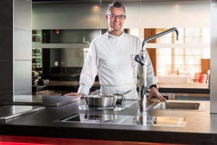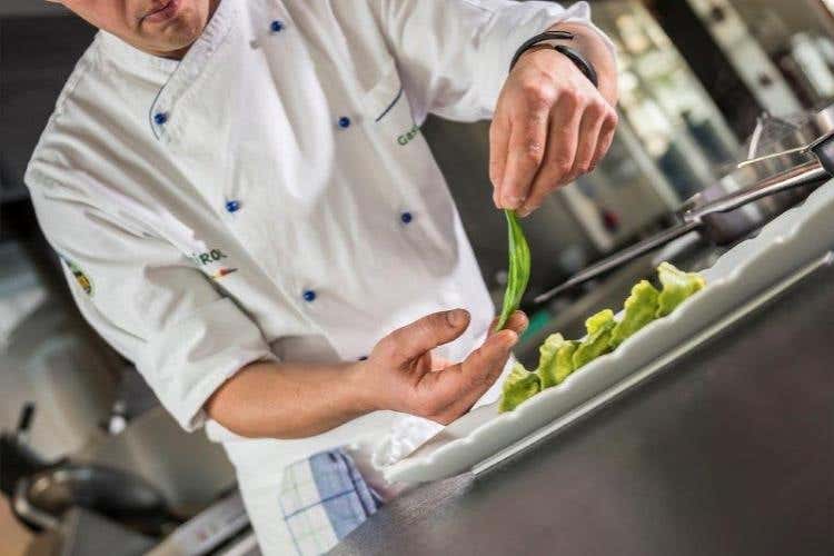 «Quando decido un menu da proporre - dichiara il cuoco - penso di farlo per me stesso e per la mia famiglia». Questo il segreto di Karlheinz Falk, 54 anni e 40 anni di esperienza, che ha cominciato a soli 15 anni questo mestiere; ha per ben 14 anni insegnato alla scuola professionale alberghiera di Merano e dal 2010 dirige il ristorante dell’albergo con eleganza e professionalità impegnandosi a sorprendere ogni giorno, cosa non facile, centinaia di palati di diverse città d’Italia e Paesi oltre confine.
