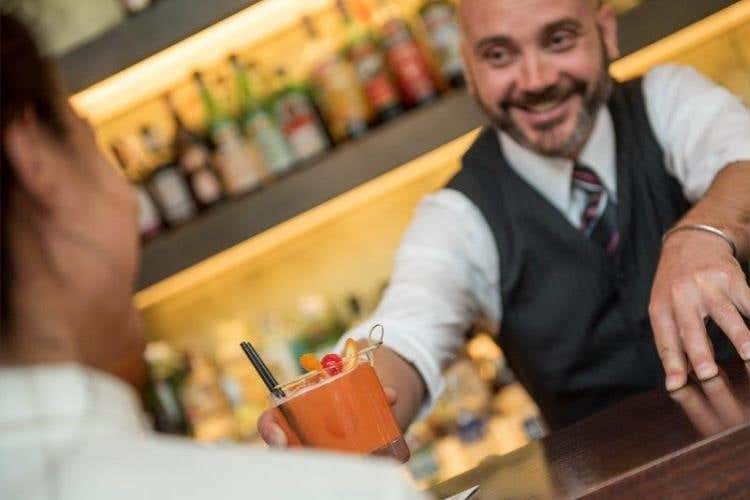 nella foto), 37 anni e con una lunga esperienza da professionista nel settore bar e accoglienza, è ricco di proposte golose per tutti i gusti ed esigenze; vasta gamma di tè per gli amanti dell’aromatica bevanda tradizionalmente orientale, fantasiosi cocktail analcolici per chi è astemio; e per chi non lo è sono proposti gli originali crushed, frozen e virgin cocktail, oltre a quelli classici e ad una selezione accurata di pregiati vini italiani, internazionali e una lista di liquori tradizionali.