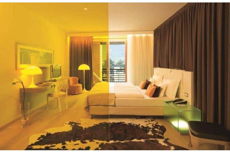 Prima di accedere alla hall dell’albergo l’ospite si trova di fronte una struttura architettonica di arte contemporanea immersa in un contesto ottocentesco. Varcata l’entrata il benvenuto è speciale; un intreccio di forme e colori dallo stile e comfort moderno e nel design un forte richiamo alla storia dell’Alto Adige.