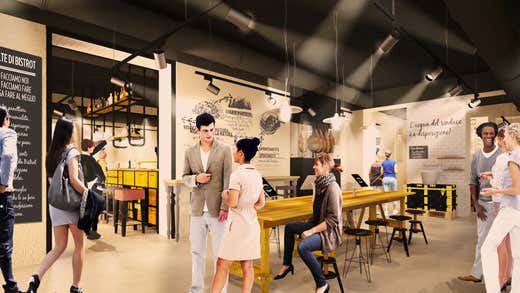 Allo stesso piano, inoltre, sarà presente un Wine Bar, che proporrà al visitatore una selezione delle eccellenze enogastronomiche italiane. Due concept di alta cucina, ma accessibili al grande pubblico, che rappresentano l’ultimo stadio della lavorazione della materia prima. L’edificio comprende anche la libreria Feltrinelli collocata al piano seminterrato. La nuova flagship store del Gruppo, che aprirà al pubblico il prossimo 30 aprile, è stata realizzata in collaborazione con l’Università degli Studi di Scienze Gastronomiche (Unisg) di Pollenzo (Cn) e ha comportato un investimento complessivo di 13,5 milioni di euro.