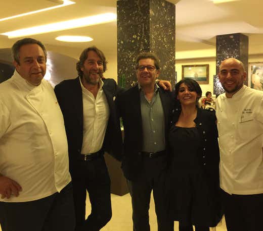 I vini in abbinamento erano di due aziende prestigiose: la franciacortina Monte Rossa (presente il patron Emanuele Rabotti) e la toscana La Massa (titolare Gian Paolo Motta). Meriterebbero entrambe un lungo discorso per il blasone che le circonda. Monte Rossa - che ben conosco da anni - ha messo in campo, insieme alla lieta novità del Flamingo Rosé, i collaudatissimi e premiati Prima Cuvée Brut (un Blanc de Blanc da uve selezionate) e Cabochon Brut Millesimato, il prodotto più prestigioso. Finora a me sconosciuto era il personaggio Gian Paolo Motta (napoletano di nascita, trasferito in Toscana 26 anni fa, vignaiolo per vocazione e amore a Panzano in Chianti), titolare dell’azienda “La Massa” che non ha problemi di vendite perché il 95% della produzione dei suoi 27 ettari vitati va all’estero.