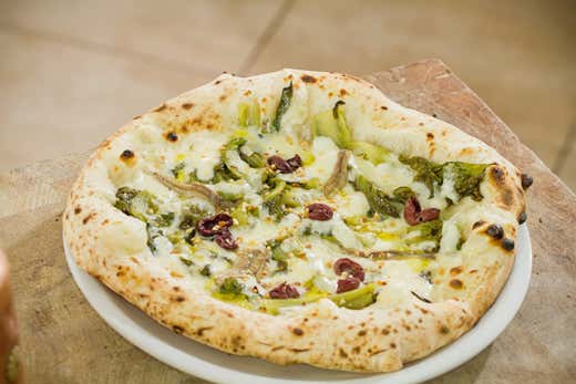 Utilizzo sapiente, né casuale né frutto di moda, di prodotti Dop e di prodotti presidiati da Slow Food. Ne sortisce interessante proposta di antipasto che è lode al territorio e ad una semplicità quasi sempre difficile a farsi: Mozzarella di Bufala Campana Dop (da area salernitana proveniente) e bruschetta con Pomodorino del Piennolo del Vesuvio Dop. Questo stesso pomodoro, in giunzione con il Pomodoro dell’Agro Sarnese-Nocerino San Marzano Dop, lo ritroviamo su una pizza che è elogio forte e vitale della tradizione: la napoletana, laddove ai suddetti due pomodori si aggiungono le alici di Cetara, le olive nere di Gaeta, l’aglio dell’Ufìta ed olio extravergine di oliva.
