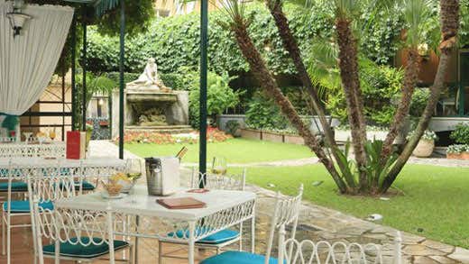 Il Ristorante Rossini dello storico Hotel Quirinale offre tanto ai suoi ospiti, soprattutto in estate. Oltre a un raffinato menu e all’eleganza che distingue tutti gli ambienti e i servizi dell’albergo, con la bella stagione spalanca le porte sullo splendido e fresco giardino interno, caratterizzato da un imponente cedro del Libano secolare e su un’antica fontana, mentre i tavoli all’aperto del Ristorante Rossini si trovano nella veranda o direttamente sul prato, un angolo rigoglioso incastonato nel centro di Roma. Il menu del ristorante propone classici della cucina italiana interpretati dal cuoco Cristian Silvestro, la cui cucina è rispettosa della tradizione, leggera e impreziosita da tocchi aromatici ed erbe. All’offerta in carta si aggiungono fino a fine agosto la possibilità di ordinare il wrap kebab e la domenica il barbecue.