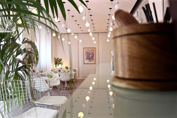 Ma in questo luogo di luce, in una delle zone storicamente più ricche della metropoli meneghina, troverete di più; un’accoglienza raffinata e di livello, un incantevole giardino d’inverno aperto tutto l’anno con 30 coperti che si aggiungono agli 80 del ristorante, un cocktail-bar condotto in maniera professionale e intrigante da Federico Pouchan, alcuni primi piatti preparati con paste di eccellenza e una discreta carta dei dolci.