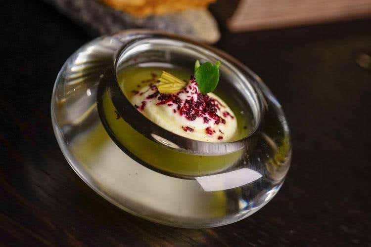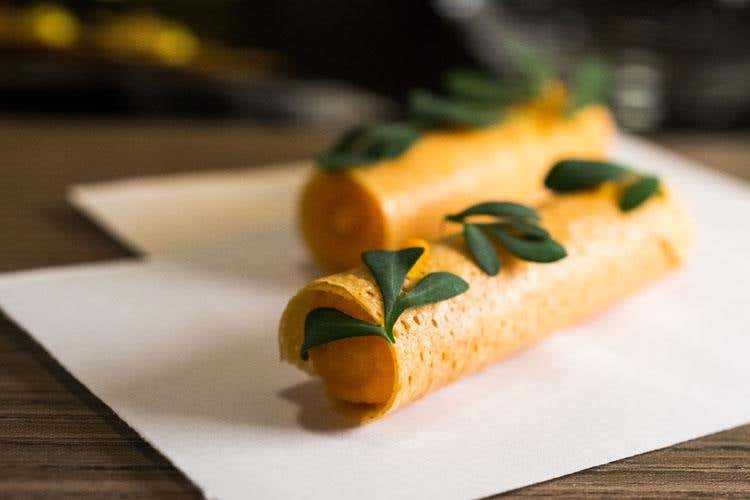Un menu alla carta, una degustazione “Classica”, un percorso vegetariano e “sperimentazione a mano libera”, parlaci del tuo menu. Nel momento in cui bisognava comporre la carta, abbiamo deciso di proporre due diverse opzioni: una per i palati più classici o che comunque preferiscono gusti più rotondi, un'altra per chi ha intenzione di provare le proposte più “spinte” e innovative della nostra cucina. Abbiamo quindi inserito nella carta piatti che soddisfano entrambe le richieste; di conseguenza anche i menù degustazione li abbiamo sviluppati intorno a questa possibilità di scelta: il “Classico”, 5 portate per i gourmand, il “Green power” 5 portate per i vegetariani, e non lo facciamo per moda ma perché crediamo fortemente nella valorizzazione dell'elemento vegetale. Infine il “Mano libera”, 9 portate a sorpresa, che vengono scelte da me, e con cui testare appieno la filosofia della mia cucina; è sicuramente il menù più rock and roll dei tre!