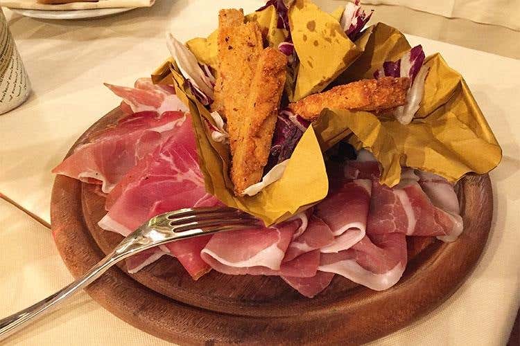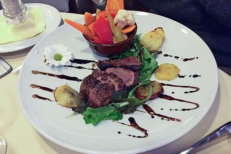 Capitolo pesce. Poca scelta, ma originale: Trota, tagliolino funghi e gamberi e un salmone marinato nel whisky accompagnato da contorni di stagione. L'obiettivo è la stella, quella che c'era nel 1968. C'è ancora strada da fare, ma “in bocca al lupo”.