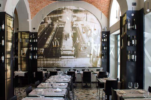 Ambiente accogliente con un dècor moderno e un tocco vintage: da un lato si possono ammirare le antiche volte, i colori caldi e una parte di pavimento in marmo palladiano; dall'altra le cento lampadine a led appese al soffitto con lunghi fili, le travi d'acciaio, le grandi vetrate serigrafate e le rappresentazioni della Grand Central Station di New York. All'interno di questa location è possibile assaporare piatti particolari che a volte sembrano non avere riferimento col contesto, quasi dovessero viaggiare da soli.