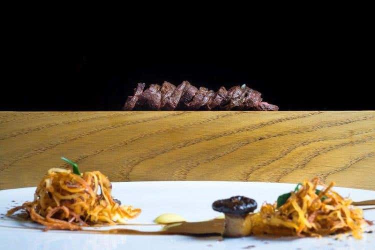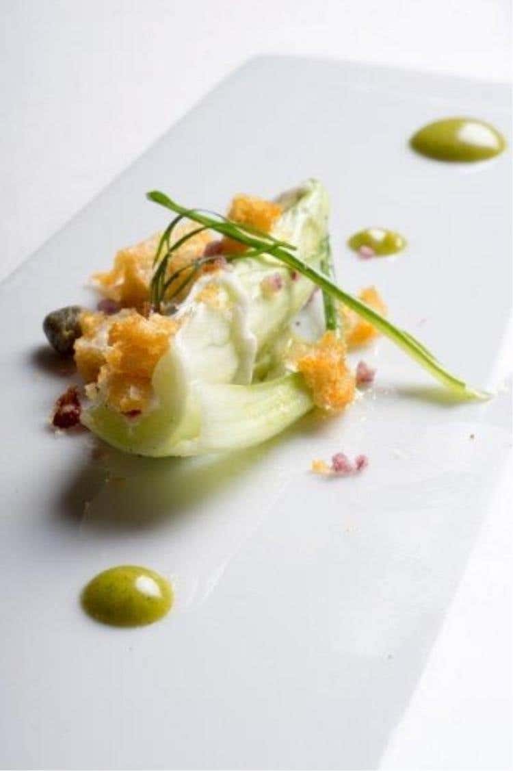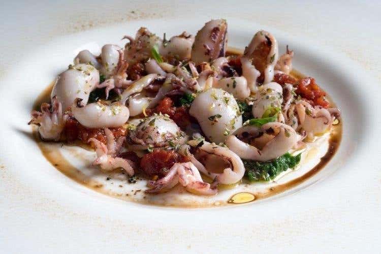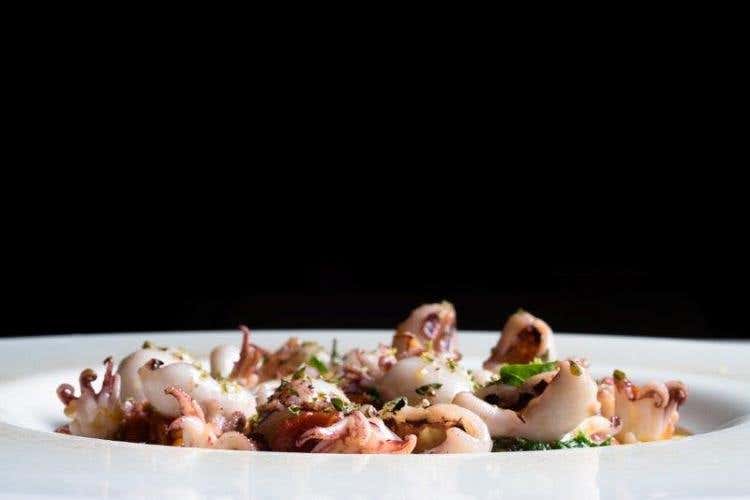 Tra i piatti che più ci hanno colpito citiamo: Zucca, zola e zenzero (cappelletti alla bourguignonne); “Pasta al mare” (linguine di farro con spiaggia, profumi e frutti di mare); Branzino selvaggio dell’Adriatico cotto sul fuoco, acciuga, oliva e broccoletti; Gallinella di mare e ortaggi verdi in brodetto allo zafferano; Piccione arrostito, rabarbaro fresco e foie gras; Maialino da latte croccante, tamarindo e pinzimonio; Passato di cachi al limone, piccoli frutti e sorbetto; Meringata ai marroni piemontesi con gelato al succo d’acero; Erbe e polveri del mondo.