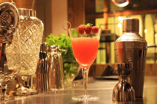 Punto focale del locale è il bar con luci soffuse e atmosfera intima ispirato ai locali del proibizionismo e il suo bancone, dove è possibile anche accomodarsi, pensato per attirare l’attenzione sulla preparazione dei cocktail. Una curiosità il servizio di bicchieri in cristallo da collezione acquistato all’asta da Christie’s London, appartenuto al Primo Ministro inglese, Margaret Thatcher. E il barman Aldo Termine, ispirato dalla figura della Lady di Ferro ha studiato un drink che viene servito in questi bicchieri, The Iron Lady, Peychaud’s bitters, bell’s scotch whisky, Sangue Morlacco Luxardo, Ferro-china e karkadè.