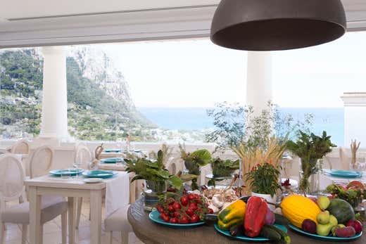La ristorazione è curata dallo chef Luigi Lionetti, nel ristorante “Monzù”, storpiatura dialettale napoletana del francese "Monsieur", come erano chiamati i capocuochi delle case aristocratiche. Classe 1984, caprese doc, Lionetti, che ha collaborato con Gennaro Esposito, lega ogni suo piatto al territorio, utilizzando quasi esclusivamente prodotti freschi dell'isola. Tra le specialità proposte, il riso con scampi, limone, capperi e burrata, e i ravioli di parmigiana di carciofi, timo e menta. «In cucina bisogna essere essenziali, mai banali» è la filososia di Lionetti.