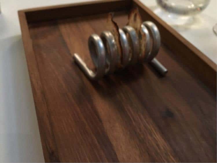 Interessante è il Cilindro di patate, sedano rapa e wasabi, gel di vitello e uova di aringa, fosse anche solo per gli inconsueti abbinamenti. Un po' più scontata l'Ostrica, granita di vermouth, lattuga mentre da non perdere sono i Gamberoni rossi, fragole, pomodori al profumo di vaniglia (davvero buoni) come gli intriganti Spaghetti di grano arso, ricci e lumachine di mare.
