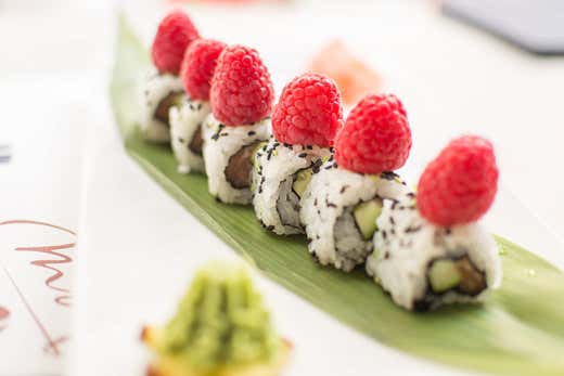 Ma se questo è l’incipit, il sushi by Claudio è tutt’altro, cominciando dalla miscelazione del riso fino all’alternanza di temperature che rende speciale la consistenza del pesce. Poi arriva il tocco speciale: le uova di Tobiko, un pesce volante, speziate al wasabi, all’arancio e alla fragola. Ne deriva un sushi-gourmet davvero inedito. Spesso anche lo chef Vincenzo Ciano, forte della sua esperienza internazionale, dai fornelli della Tour d’Argent fino a quelli d’Oltreoceano e d’Oriente, ama giocare con sapori esotici, ma con mano leggera perché ad emergere sia sempre la materia prima.