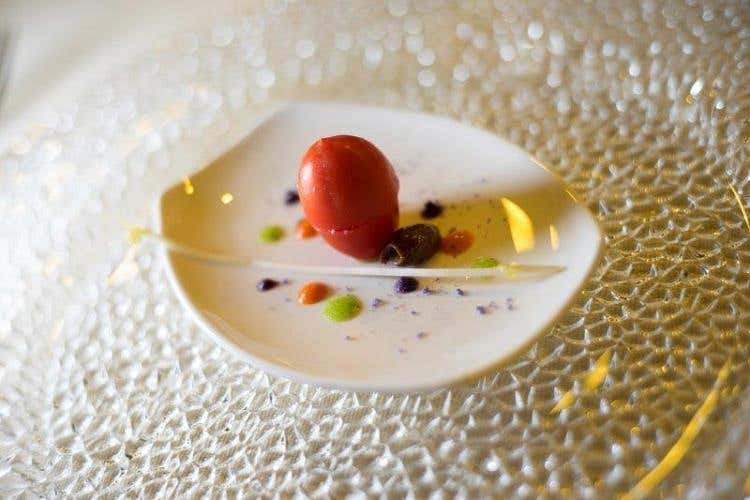 Gnocchi di patate viola con gambero scottato aria di pomodoro e salsa allo zafferano«Ho iniziato a cucinare da quando avevo 3 anni - racconta lo chef - è una passione che mi ha trasmesso mio padre. La passione e la formazione sul campo mi hanno portato qui. Ho avuto la fortuna di lavorare con professionisti che mi hanno insegnato molto, come Chicco Coria che mi ha fatto fare passi da gigante, ma il segreto è non smettere mai di studiare e fare ricerche, spesso mi trovo la notte a studiare».