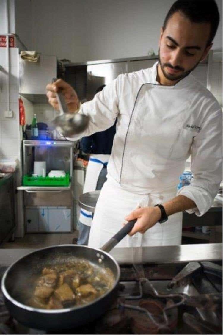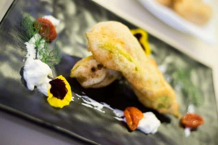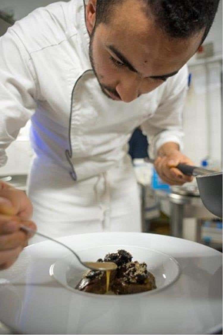 nella foto), giovanissimo ma competente e appassionato, è una contaminazione di sapori tipicamente italiani e richiami etnici. Le origini marocchine dello chef si percepiscono prima alla vista, notevoli i giochi cromatici dei piatti, come per gli Gnocchi di patate viola con gambero scottato aria di pomodoro e salsa allo zafferano, e poi al palato, quando nella Guancetta di vitello cotta a bassa temperatura con prugne al miele panate nel sesamo e mandorle tostate si incontrano note inconfondibili di spezie come zenzero, la cannella.