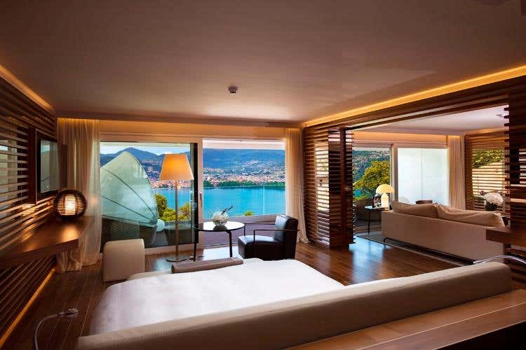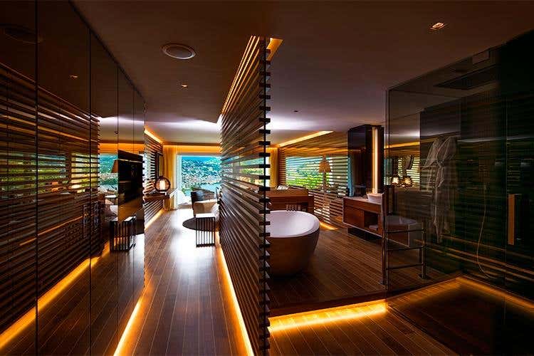 Ciascuna delle 18 suite cattura gli ospiti fin dal primo istante grazie alla vista mozzafiato che regalano le grandi finestre, lasciandoli stupiti ogni volta come fosse la prima. Le suite, tutte rigorosamente vista lago e dotate di uno splendido terrazzo, ricordano una cabina armatoriale di grandi dimensioni: 16 hanno infatti una superficie di 50 mq e due di 105 mq modulabili, con pareti scorrevoli che si possono chiudere creando una meeting room nella zona giorno da dedicare anche al lavoro, ma che di notte si trasforma in una camera da letto per due persone.