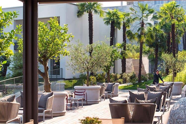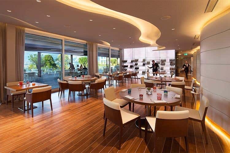 Un design di altissimo livello contribuisce infatti a sottolineare ed esaltare questo elemento distintivo grazie agli interni che, a partire dal teak navale, evocano un ambiente nautico, dando agli ospiti la sensazione di trovarsi all’interno di un esclusivo yacht sospeso sul lago. La grande terrazza, che ricorda il ponte di una nave, è divisa in parte Lounge e parte ristorante ed è il luogo ideale sia per rilassarsi e godere del panorama immersi nel silenzio, sia per ospitare eventi esclusivi.