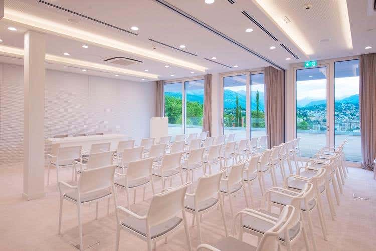 The View Lugano è anche un’ottima location seminariale adatta a Board meeting e a riunioni escluse grazie alla meeting room dedicata con i suoi 89 mq e una parete rimovibile, che può accogliere fino a 70 persone.