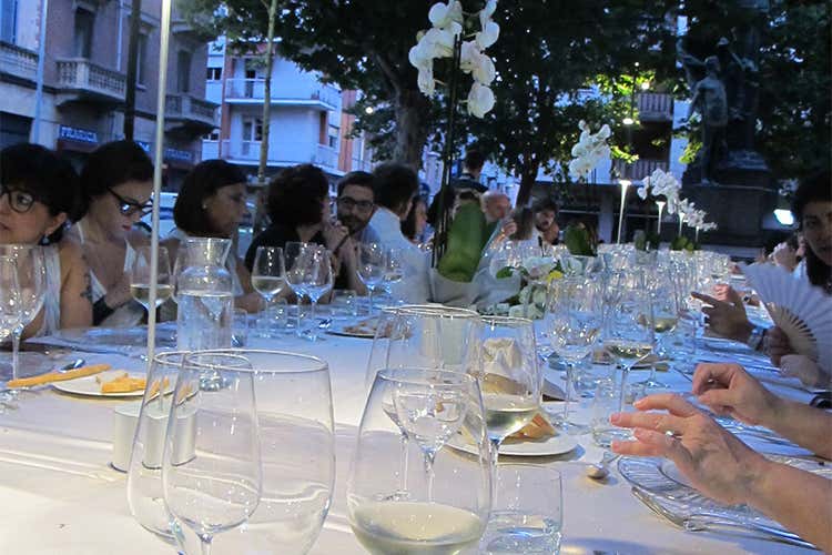 Un lungo tavolo bianco con un essenziale decoro di orchidee ha accolto i 100 ospiti mentre i ragazzi minorenni dell’associazione Antigraffiti gestita dal sacerdote della Circoscrizione 8, Don Mauro, si sono occupati con molta professionalità del servizio ai tavoli. Il banchetto è stato organizzato dall’associazione “Talenti & Gusti”.